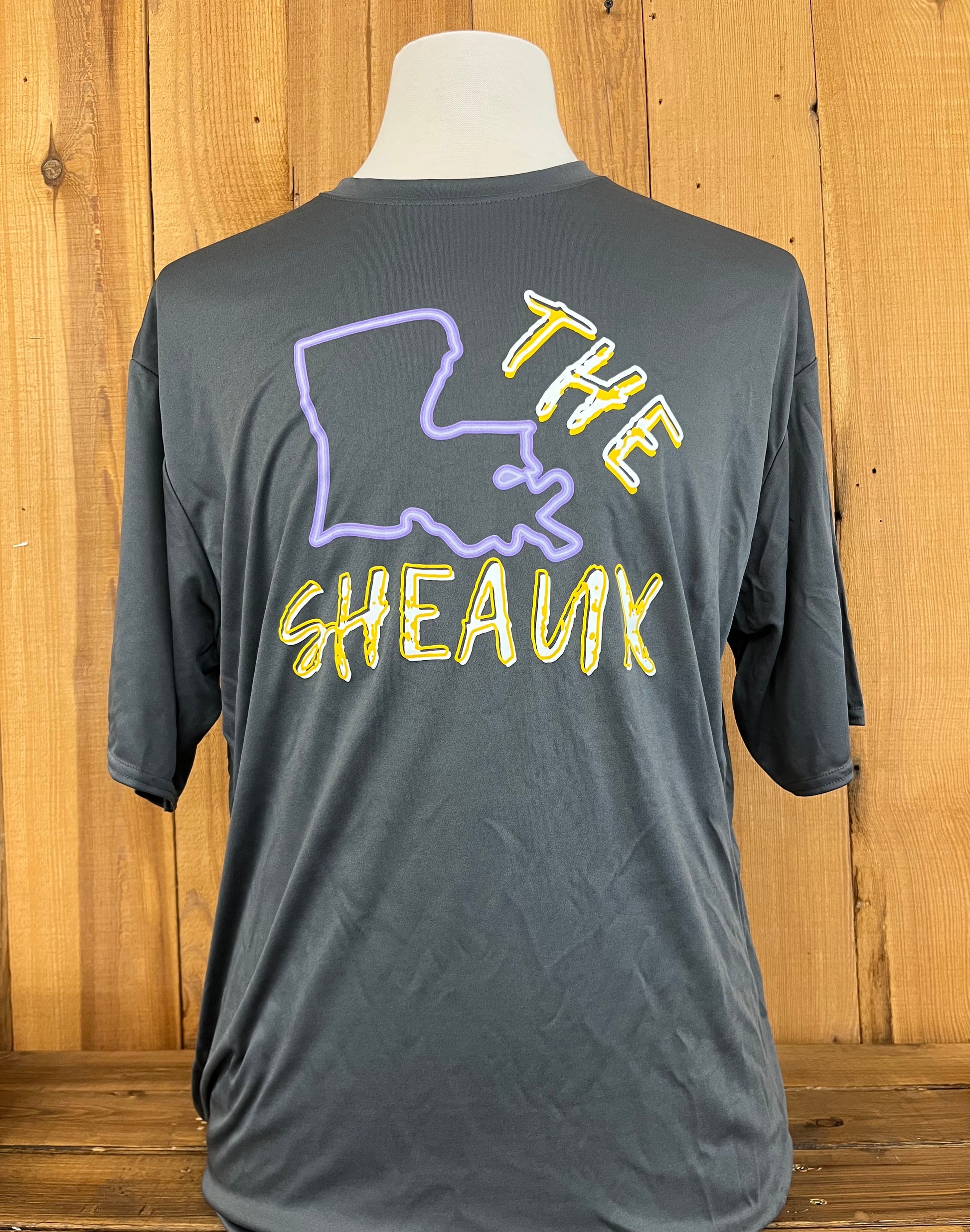 THE SHEAUX LOGO PERFORMANCE TEE-GREY